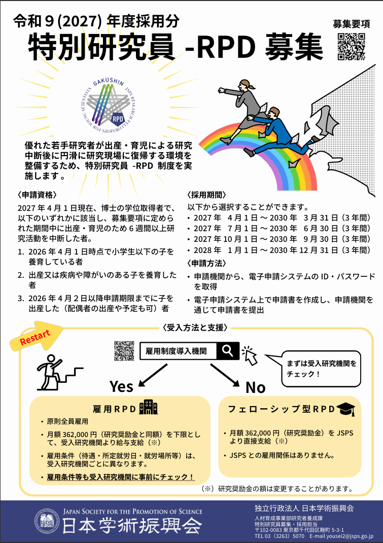 令和9(2027)年度採用分特別研究員RPDの募集について