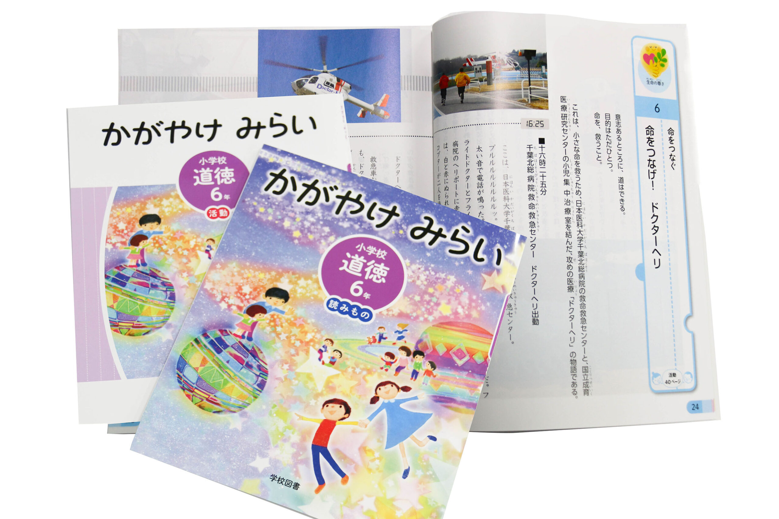 本学のドクターヘリが、小学6年生対象の道徳教科書に掲載されました。
