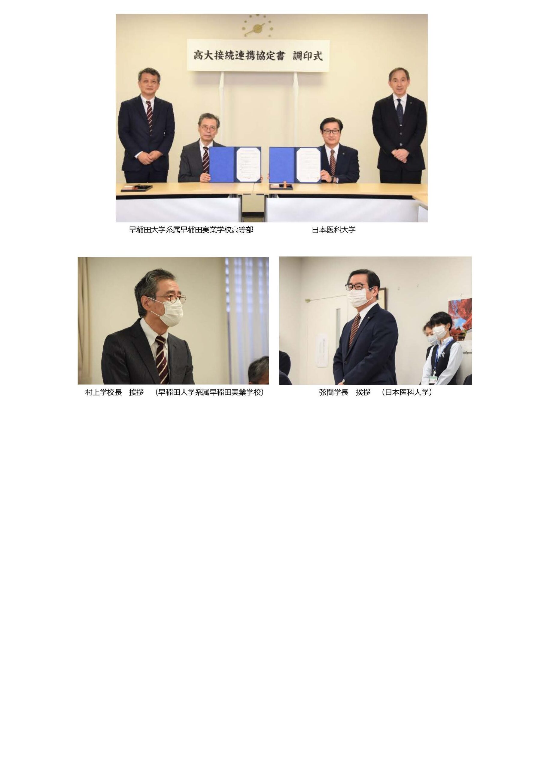 日本医科大学と早稲田大学系属早稲田実業学校高等部との高大接続に関する協定について
