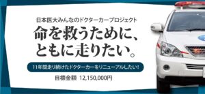 【クラウドファンディング】 日本医大みんなのドクターカープロジェクト 命を救うために、ともに走りたい。