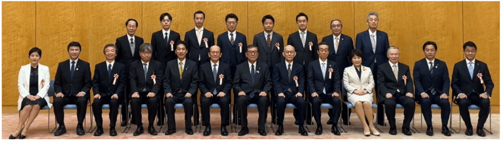 石破 茂 内閣総理大臣、城内 実 健康・医療戦略担当大臣ら閣僚との記念撮影に臨む本田一文大学院教授(左から4番目)