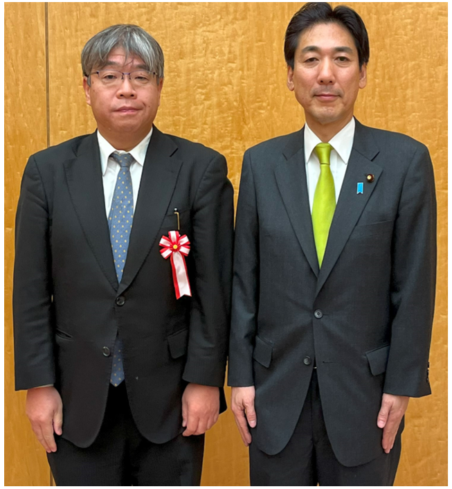城内 実大臣と本田一文大学院教授(左)