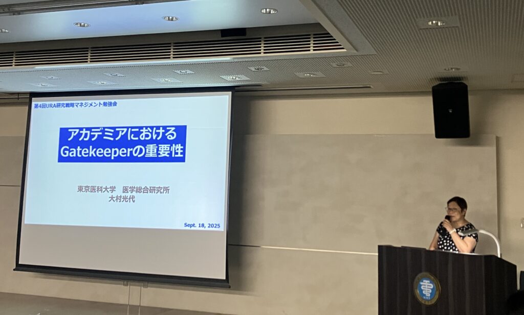 今回は、東京医科大学 医学総合研究所の大村 光代 先生をお招きし、「アカデミアにおけるGatekeeperの重要性」をテーマにご講演いただきました。日本におけるURAの現状や役割、必要な資質や人材育成、さらには他機関との連携に至るまで、幅広いご示唆をいただきました。
