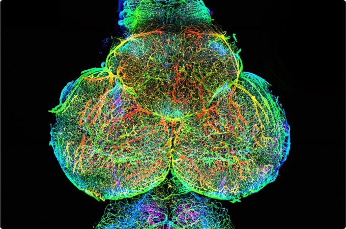 ゼブラフィッシュをモデル動物として用いたin vivo蛍光イメージングで、生体内の血管新生や血管構造の動態をリアルタイムに観察・解析しています。特に、内皮細胞やペリサイトの振る舞いに注目し、血管形成や機能維持の仕組みを解明しています。